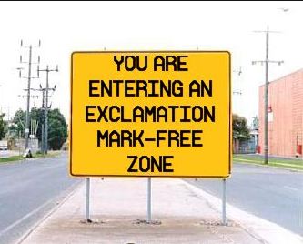 sign(There was a great moment in a TV version of Mrs Gaskell's 19th century novel, Cranford, that I saw recently - one sweet old lady discussing a letter received from a friend: "She wrote in a state of great distress. There were (awed whisper) exclamation marks.")